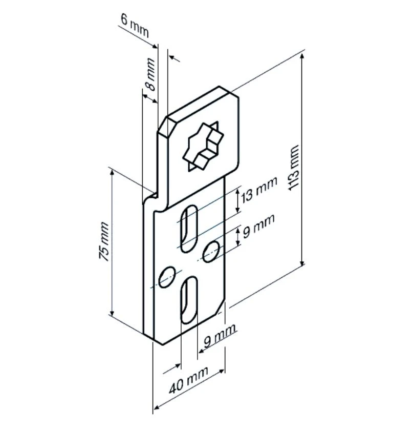Kastenlager-L Stern-16 mit Stern für Steckzapfen 1/16, 2/16 und 4/16 Für Becker Rohrantriebe  R und L Serie