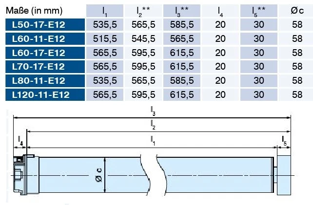 ** Mitnehmerbreite von DW78N (4931 300 365 0) , bei Wahl eines anderen Mitnehmers ändern sich die Maße l2, l3 und l5