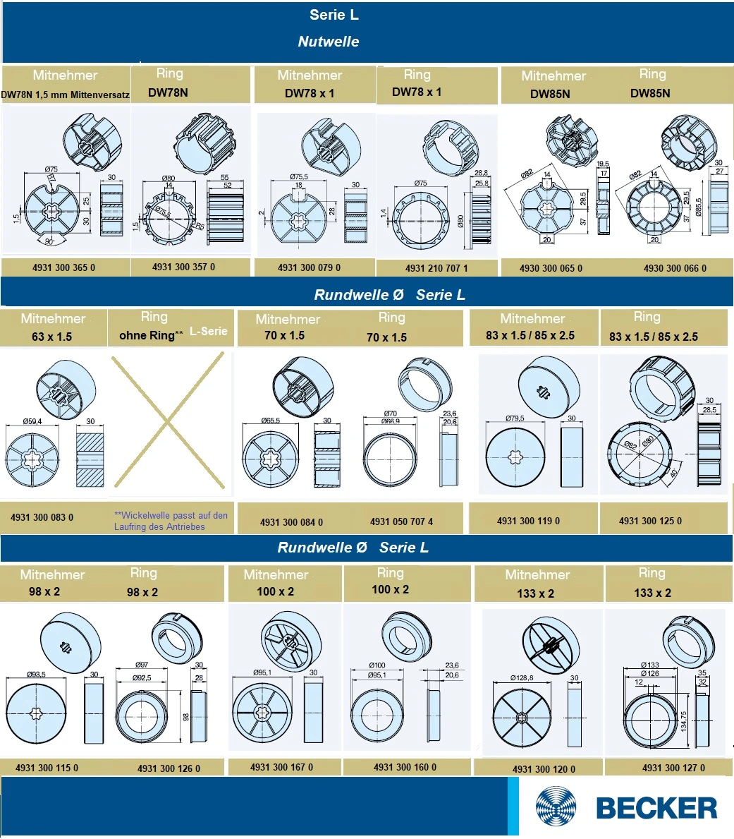 Becker - Universal Markisenantriebe L50-E12 bis L120-E12 Serie L-E12