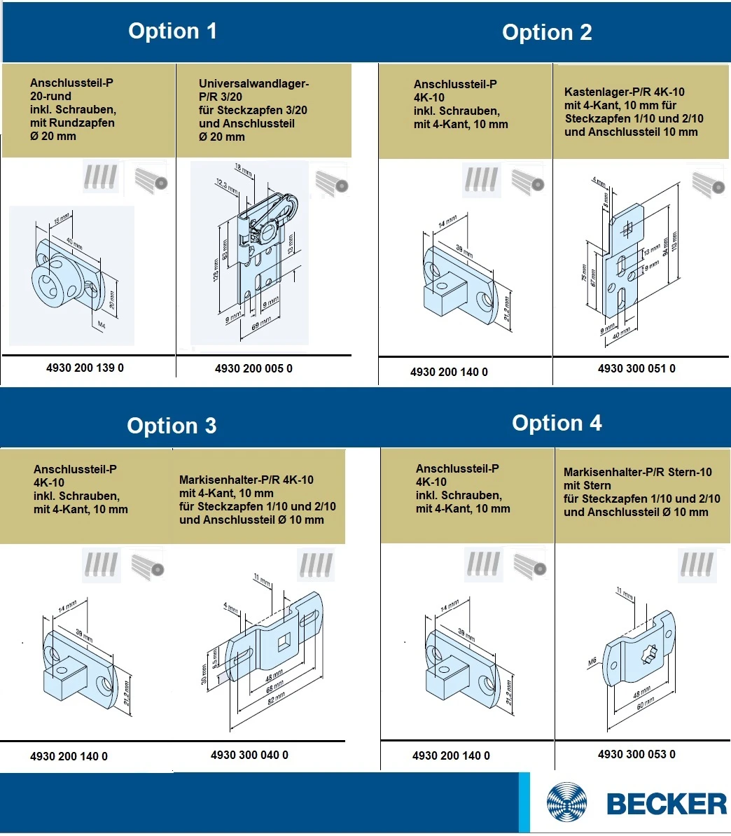 Becker - Sonnenschutzantriebe für Verrigelungssysteme mit integriertem Funkempfänger P5-C16 bis P9-C16 , Serie P , Typ C16