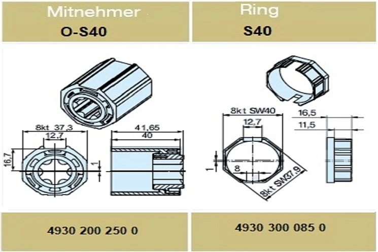 Adapterset für Achtkatwelle O-S40 ,für sensible Hinderniserkennung für Becker Rohrmotoren Baureihe P