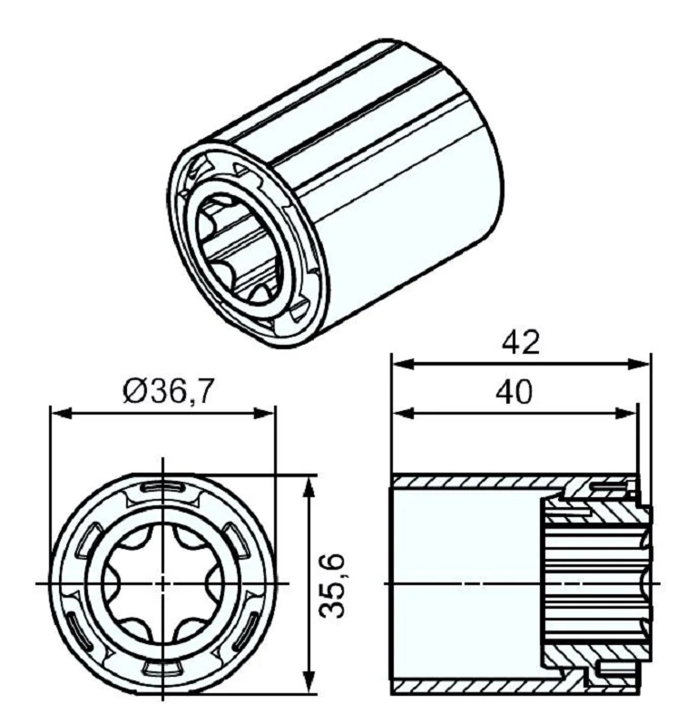 Adapterset für Rundwelle O-40 x 1,3 / 40 x 1,5 ,für Becker Rohrmotoren P Serie mit Hinderniserkennung
