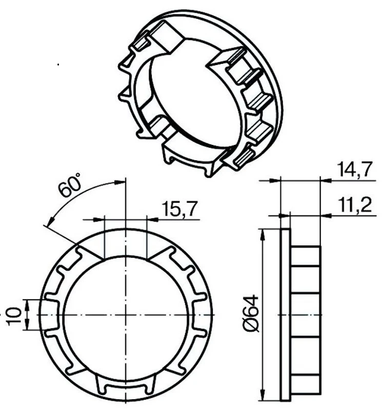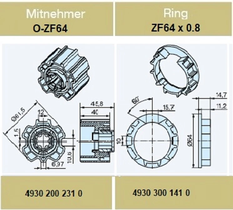 Adapterset für Profilwelle O-ZF64,für Becker Rohrmotoren  Baureihe P und R Serie mit Hinderniserkennung