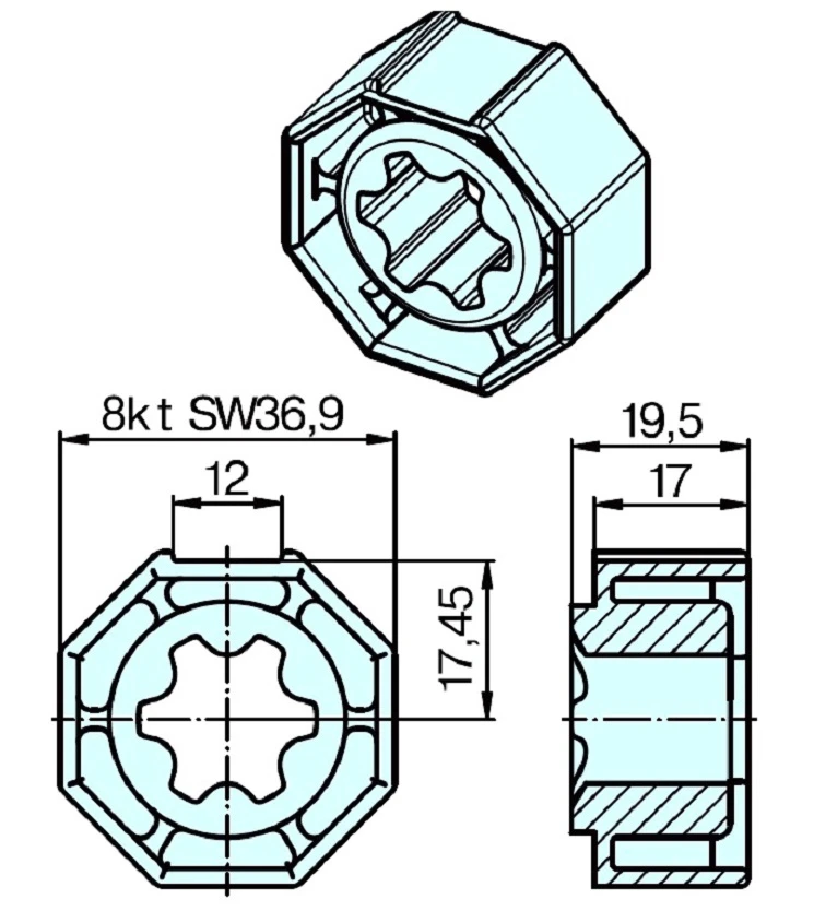 Adapterset für Achtkatwelle S40VM ,für Becker Rohrmotoren der Baureihe P Serie