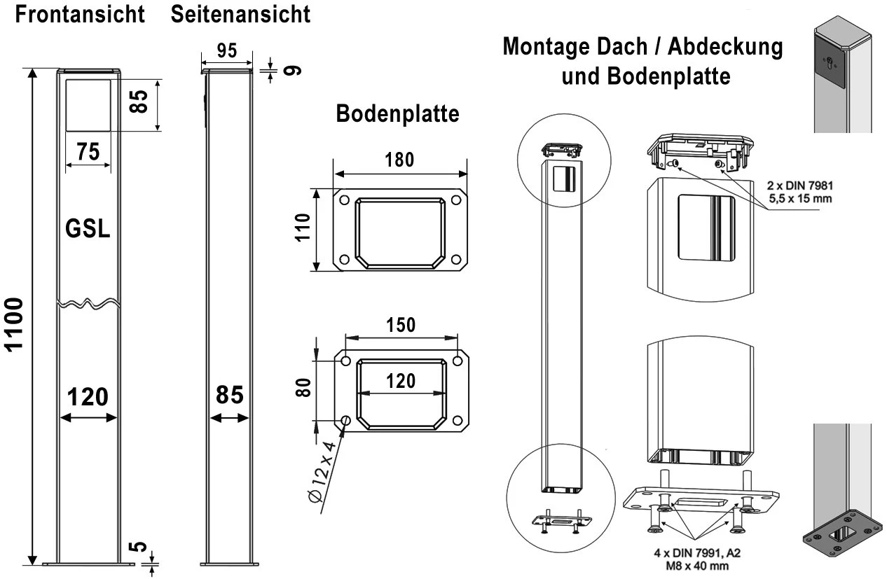 GSL/G 1-1T Alu-Standsäule GSL mit Bodenplatte, Farbe lichtgrau,