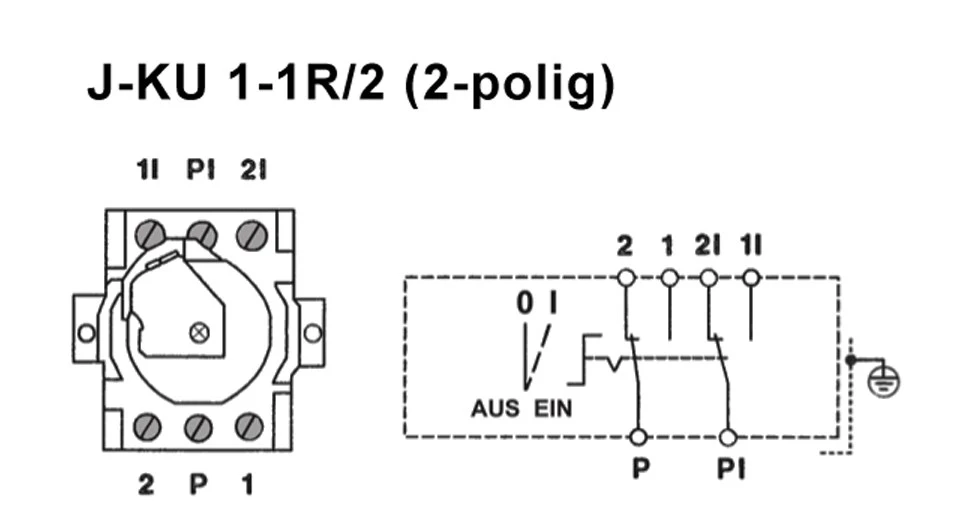 J-KU 1-1R/2 UP Schlüssel-Schalter mit 1 Rast-Kontakt, 2-polig AUS/EIN