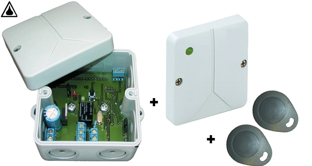 nicht kurzschließen kann. Beide Einheiten werden einfach über ein zweiadriges Kabel verbunden. Zum Öffnen oder Schließen wird lediglich der codierte Schlüssel vor den Leser