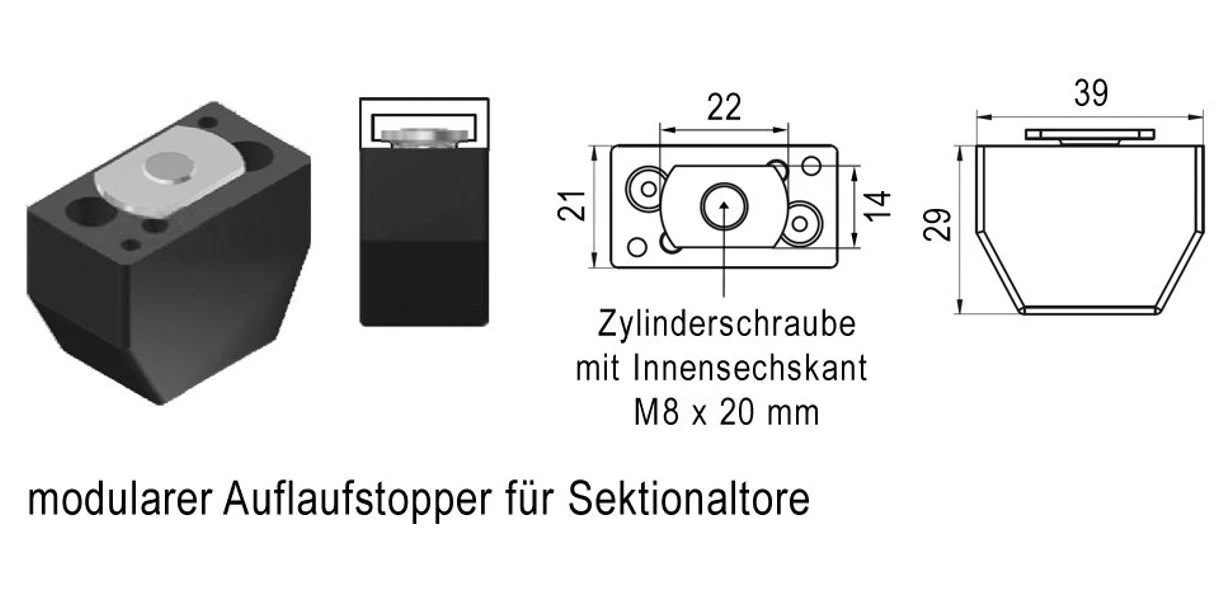 ASM1-2129 Modularer Auflaufstopper ASM1, 21 x 29mm (BxH), M8 für Sektionaltore .
