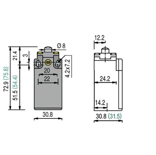 EME1-SP-KH Endschalter mit Rollenhebel Metall Sprungkontakt 1S + 1Ö