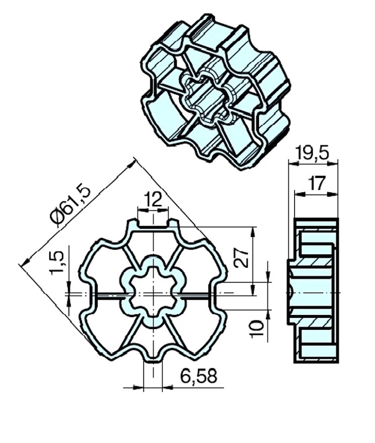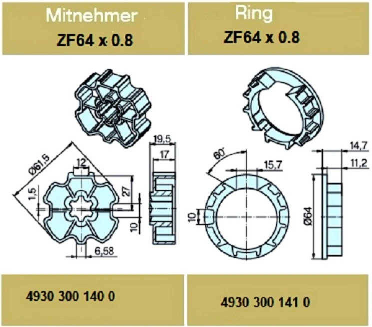 Adapterset für Profilwelle ZF64x0,8 ,für Rohrmotoren Becker Baureihe P und R Serie