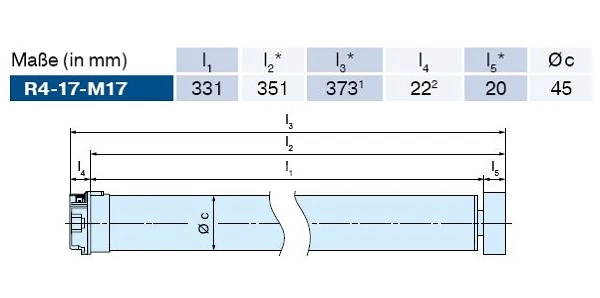 * Mitnehmerbreite von Rolm 60 (4930 300 044 0), bei Wahl eines anderen Mitnehmers ändern sich die Maße l2, l3 und l5