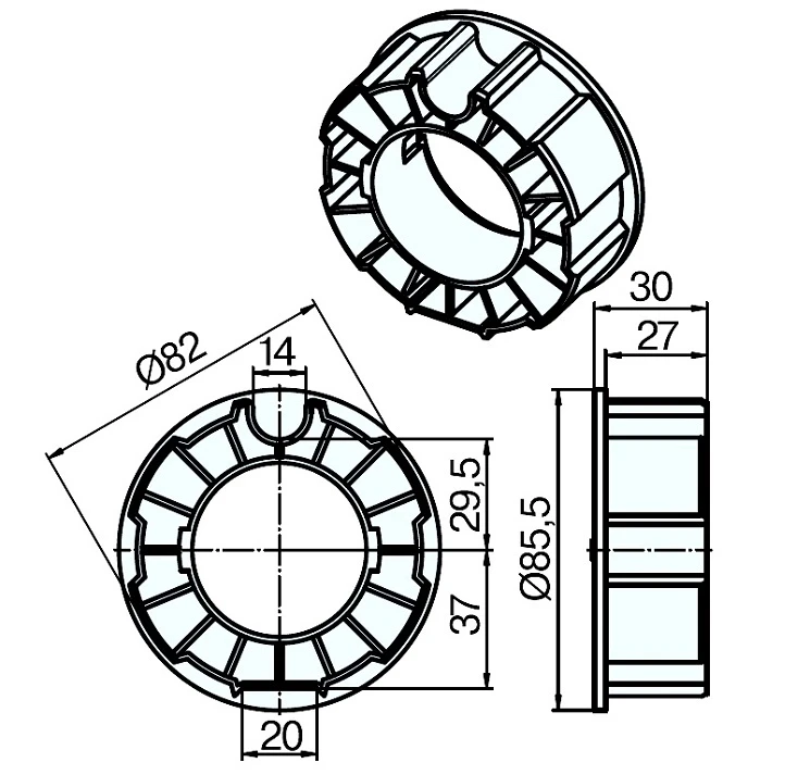 Adapterset für Nutwelle DW85N bis 30Nm für Rohrmotoren Becker Baureihe R Serie