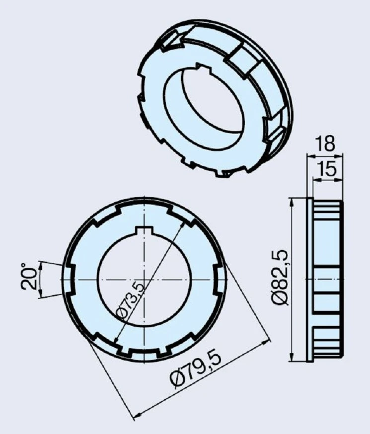 Bestehend aus Mitnehmer und Ring aus Guss/Kunststoff.
