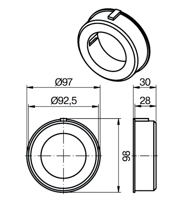 Adapterset für Rundrohr 98 x 2 ,  für Rohrmotore Becker Baureihe L Serie , aus Kunststoff