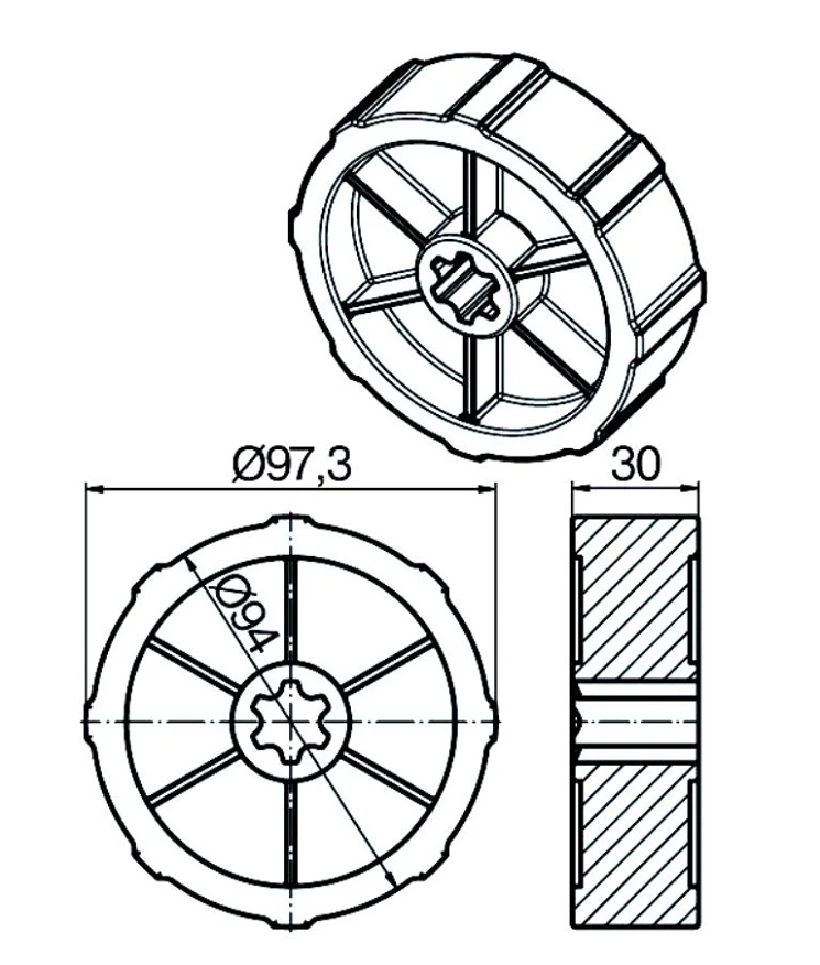 Bestehend aus Mitnehmer und Ring aus Guss / Kunststoff .