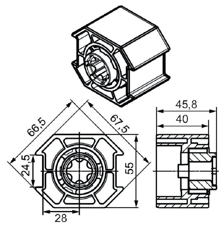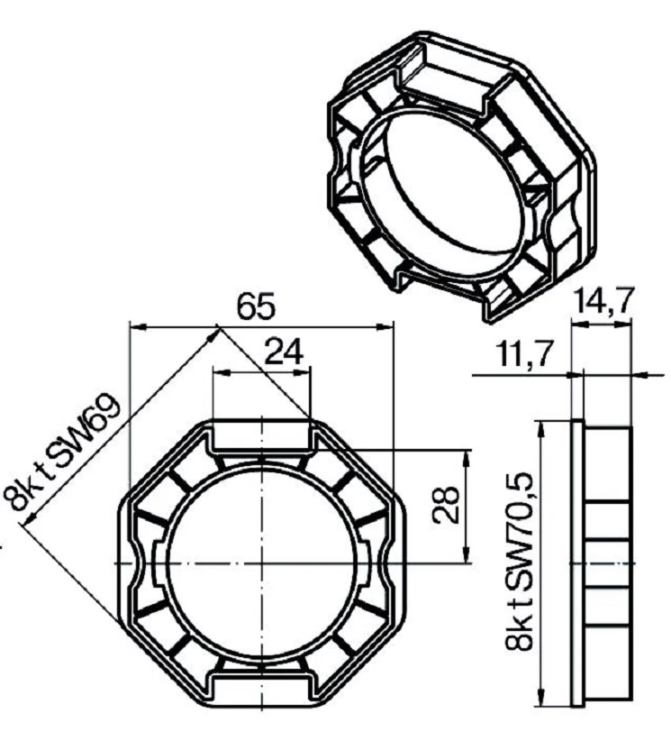 Adapterset für Achtkatwelle O-SM70 für Rohrmotoren Becker Baureihe P und R Serie mit Hinderniserkennung